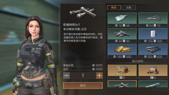 Tips:机械材料可用于提升各武器配件等级,除了通过区域行动获得,还可以在营地武器店或拱廊街购买。