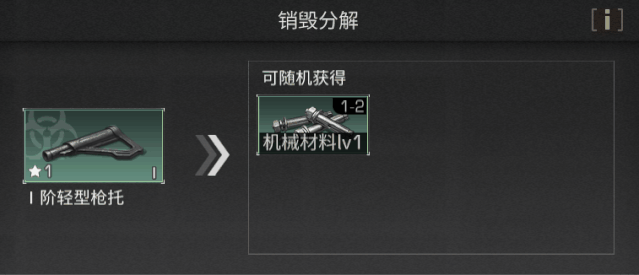 制作熟练度达到Lv38的幸存者可以学习此技能,随着技能等级的提升,对轻型武器专属配件进行销毁分解时,最高有15%概率额外获得1个机械材料。