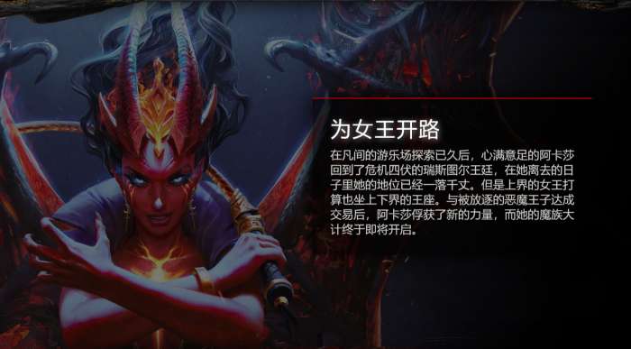 在凡间的游乐场探索已久后,心满意足的阿卡莎回到了危机四伏的瑞斯图尔王廷,在她离去的日子里她的地位已经一落千丈。但是上界的女王打算也坐上下界的王座。与被放逐的恶魔王子达成交易后,阿卡莎俘获了新的力量,而她的魔族大计终于即将开启。
