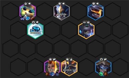 金克丝是后排的主力输出,只要前排能够抗住并给她争取到足够的生存空间她就可以成功的扫灭所有敌人。因此纳尔在这套阵容当中的作用也很关键,团战只要开出大招就能占据足够的优势。
