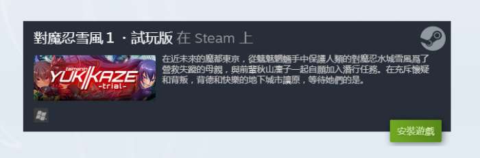 LiLiTH 知名成人 ADV 系列最卖作的《对魔忍雪风》(Taimanin Yukikaze),于今(9)日在 Steam 释出序章的免费试玩版,支援繁体中文、快速跳过对话与单手操作。然而,游戏仍采分段章节贩售,与先前上架的《对魔忍浅葱》一样,余下游戏内容尚不知何时会推出。