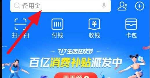 首先打开支付宝APP,打开后点击顶部的【搜索框】。