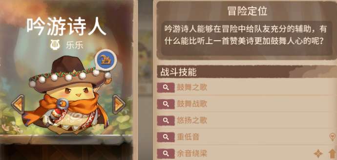 基础领队技能:随机歌单,作为领队出战时,乐乐拥有多个歌谱,每进入新的一个地图格,都会奏响其中一个歌谱,以激活一个冒险增益,持续至当前地图格的探险结束。
