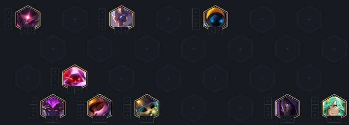 这个阵容开局选秀的时候拿装备是非常重要的,可以利用三奥德赛双刺的体系来打过渡前期,如果早期不上奥德赛就用双圣盾双法的体系来打,早期不D牌,采用的具体运营思路就是直接速七搜卡,不要想那么多!如果早期能稳血的话直接速八搜卡能更快的加快这个阵容的节奏。这个阵容的搜牌节奏必须要掌握好,这是一个大体系的阵容,如果搜牌的节奏不掌握好的话很容易陷入被动,还是秉承着看血量的原则来,血量优就八人口开始D牌,血量如果不好就七人口D争取尽早成型。这个阵容其实在运营上是没有什么难度的,简单、无脑,重点就是去发育提莫这张牌,提莫的装备可以给蛇女、艾希来过渡,尽量保证七人口的时候阵容成型。