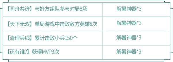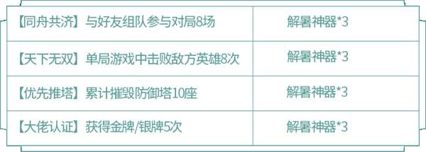 活动期间通过每日对局最多可获得解暑神器*45