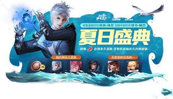 参与三分夏日之蔷薇珍宝阁系列活动,通过累计登录、每日对局、乘风破浪收集活动道具解暑神器,解暑神器可用来免费兑换盛夏的蔷薇宝藏(几率得内测皮肤)、蔷薇之心、永久皮肤自选宝箱等奖励!(商城特惠将在8月18日~8月23日开启售卖,每人限购解暑神器*6,每个售价钻石*60。)