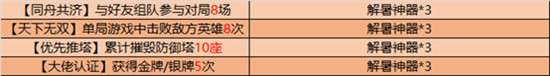 第一期:8月8日~8月14日,完成挑战可获得解暑神器*12。