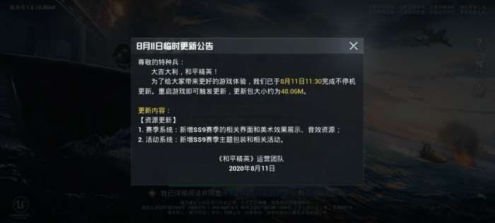 为了给大家带来更好的游戏体验,我们已于8月11日11:30完成不停机更新。重启游戏即可触发更新,更新包大小约为48.06M。