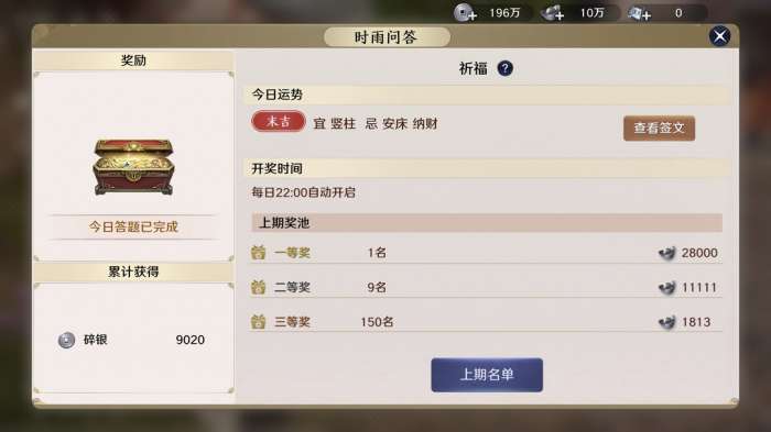 4、每日22:00进行开奖,参与求签的玩家有概率获得大量奖励。