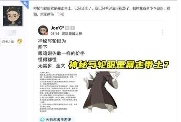 所以,符合神秘的忍者只能是在动漫里不容易被别人认出的忍者,又或者是一些存在感没有那么高,但说出来很多玩家都知道的忍者。当初帕克预告神秘面具男的时候,很多玩家还纳闷,这个忍者就叫神秘面具男?不就是带土吗?确实是带土不假,但在动漫里的那个时期,大部分人并不知道他是谁。而今天也有玩家提到说接下来要上架的神秘写轮眼忍者又是带土,不过是那个暴走版本的带土,并且还宣称是自己看到了技能演示,但就是不发出来。