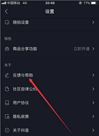 3、在设置界面点击反馈与帮助。