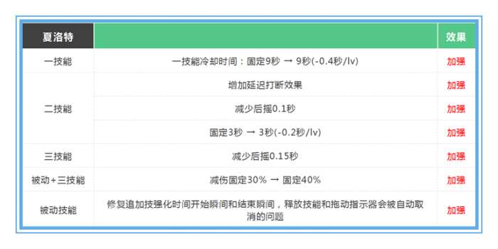 夏洛特现在太惨了,上线时间已经挺长了,胜率却依然只有42.86%,在全英雄中垫底的存在。在10月15号的这次更新中,官方是下足了功夫,主要做了两个方面的调整: