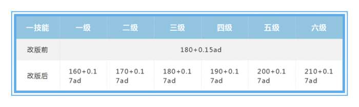 一技能在调整后,前期的伤害明显降低,而后期的伤害则明显得到了提高。