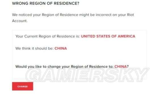 这里要特别注意:拳头的检测系统是检测ip地址从而看你是否可以修改,正常情况下国内的玩家都是图一的情况,千万不要改为CHN,也就是中国!这时就需要魔法上网,必须要挂想要转的地区的结点,如果显示是你想要的地区(成功率极低),那么恭喜你已经修改成功。当然,如果你有朋友在你需要改的地区生活,你也可以将自己的账号给他,让你的朋友直接登陆按步骤修改就ok了。