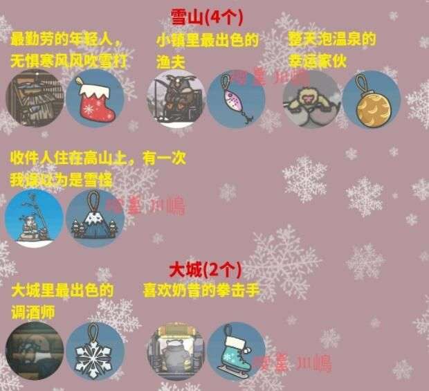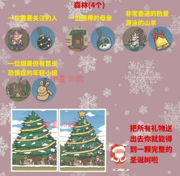 ⑥【18份圣诞礼物】和圣诞老人对话,给对应角色赠送礼物,会收到回礼,回礼可以装饰圣诞树