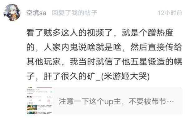 回到文中的例子,原神百晓生把网上的谣言当成所谓的“内鬼爆料”拿来给观众看,米游社上有个朋友向我说,他看了原神百晓生的视频以为有五星锻造武器,结果白肝了很久的矿。