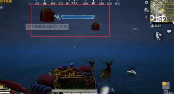 3、在驾驶驯鹿车的,填上还会有礼盒飘过,使用车上的雪球枪将礼盒打下。