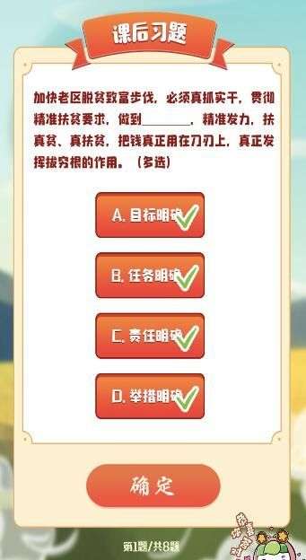 第一题:加快者区脱贫致富步伐,必须真抓实千,贯彻精准扶贫要求,做到_______,精准发力,扶真贫、真扶贫,把钱真正用在7刃上,真正发挥拔穷根的作用。(多选)