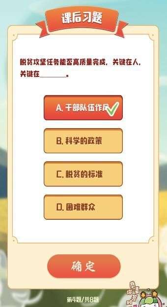 第四题:脱贫攻坚任务能否高质量完成,关键在人,关键在______。