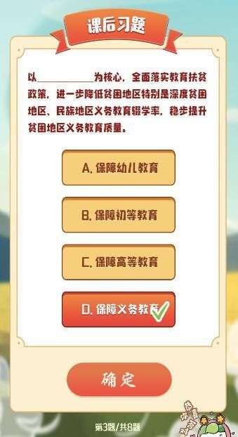第三题:以______为核心,全面落实教育扶贫政策,进一步降低贫困地区特别是深度贫团地区、民族地区义务教育辍学率,稳步提升贫困地区义务教育质量。