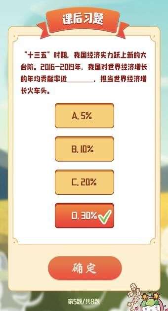 第五题:“十三五”时期,我国经济实力跃上新的大台阶。2016一2019年,我国对世界经济增长的年均贡献率近_____,担当世界经济增长火车头。