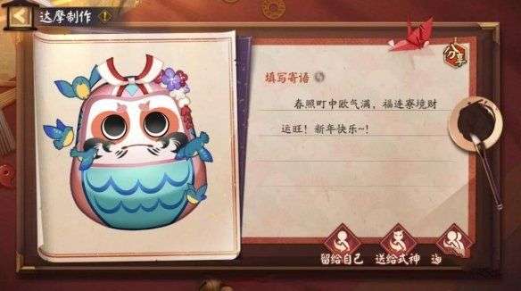 阴阳师大人在绘制达摩,寄托祝福后,可将达摩赠送给好友或者心仪式神/阴阳师。
