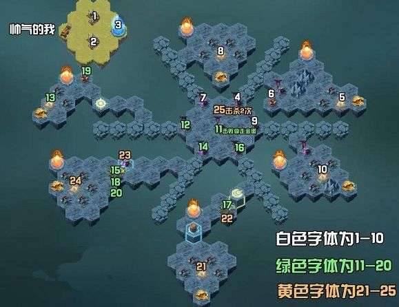 按照上图中的数字标识来一步一步的进行攻略,难度适中,都能轻松通关。