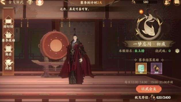 通过参与金戈演武,胜利或失败均可获得数量不等的枕戈符,用于在商铺中兑换奖励道具。