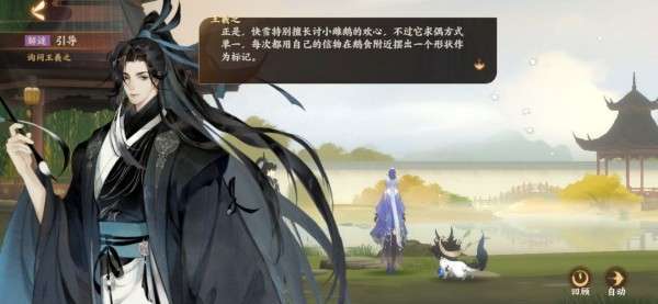拾取鹅食后触发对话:询问王羲之
