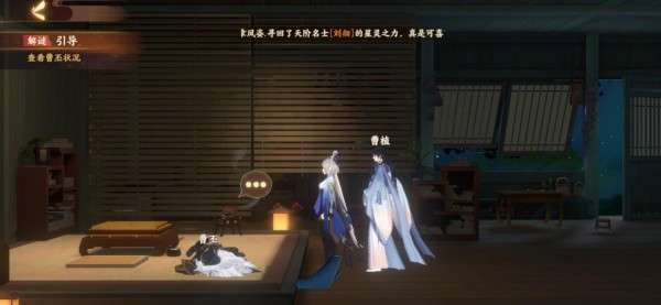 2、但当进入梦境之后,各位使君大人赖以过关的任务提示就没法用了,这时我们需要先跟曹植大人对话。