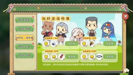 除了种菜撸猫之外,在小森村生活的日子还能结交到有趣的新朋友们,生活交友两不误!当好友添加到一定数量时就能获得金币、贝壳和限定道具奖励,马上让你的背包鼓起来!