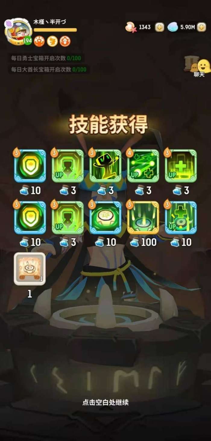 前期来说对技能的依赖性相对较小,只要属性够了就可以推图,技能的获取途径主要是挂机掉落、宠物探险、许愿、黑市购买以及最重要的来源——抽卡。前期可以不着急抽卡,等角色达到第二大陆后解锁了全部的up技能才开始抽卡,这样的收益最高,只要抽到有up的金色品质技能,就可以获得进化券,把技能提升到up级,每个职业目前有6个up技能。