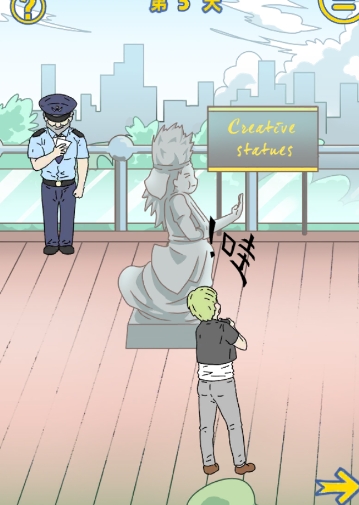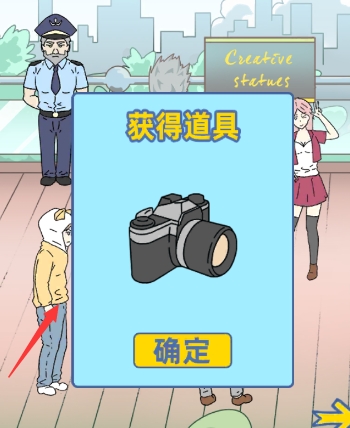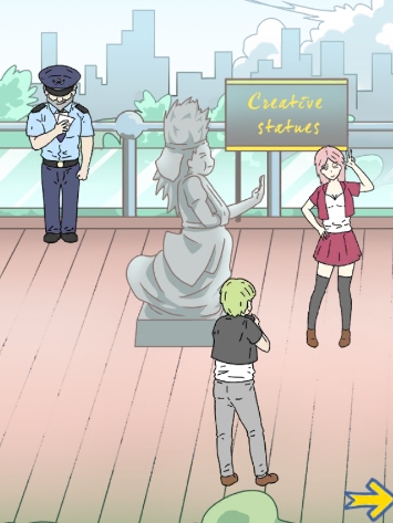 4.点击少年身上的相机,并给警察照相,当站在雕塑旁边拍照的少女为解除雕像时,对雕塑使用爆竹;