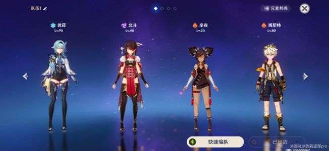 然后是个人比较喜欢的双火超导队,角色选择优菈,北斗\皇女,辛焱(4命)班尼特。首先这队的前提是优菈能自充能。