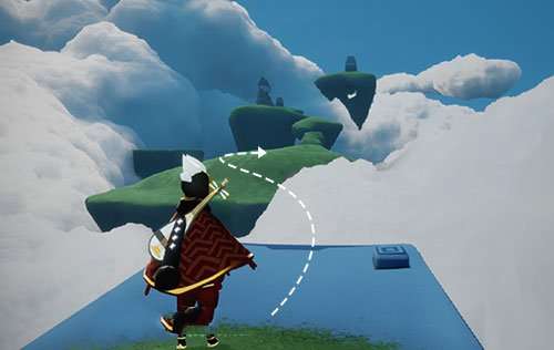 然后从平台飞到对面的岛屿。