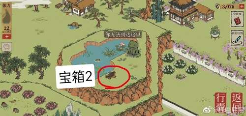 地洞-北(牡丹亭)-西北-西(桃花)-西南(房子)-东东-东东东(宝箱)