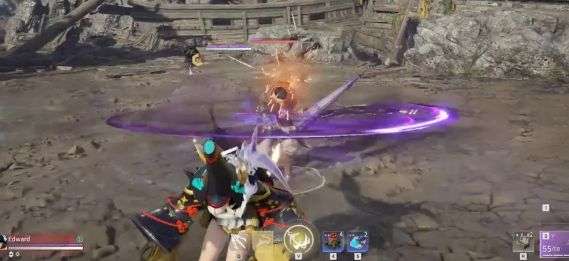 紫刃在碰到敌人后会产生微弱的伤害,当紫刃触碰到敌人时,就锁定在了该敌人的身上,变成了一个类似刀刃构成的牢笼。如果他想要逃出紫刃范围外,便会受到旋转刀刃造成的硬直。其他触碰到了刀刃的敌人也会被击飞。