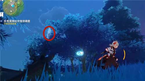 分别找到这三个谜样的人影后,每个还要再交互两次才会赶到狐狸雕像那里,由于都在地面还是很容易找到的。三个式神全部汇聚在狐狸雕像那里后,就会出现三个精致的宝箱了。