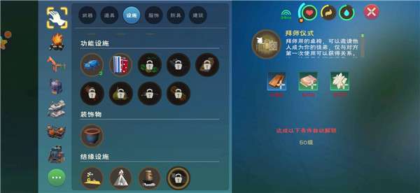 拜师仪式需要达到50级才可以制作 同样也要达到一定的亲密度才可以绑定师徒关系哦