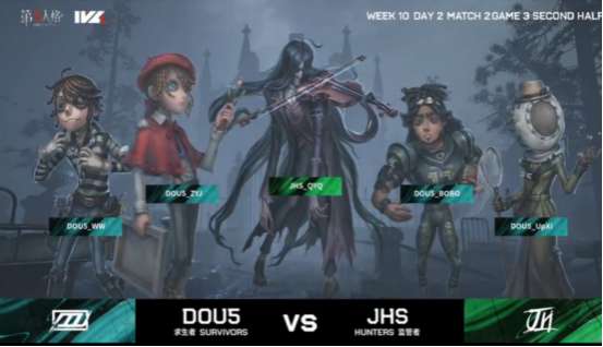 本场将进行的是第五人格2021IVL夏季赛常规赛的第10周第2天第2场中的第3局比赛,对阵双方为DOU5战队和JHS战队。上一局比赛中,JHS战队以5:3的比分拿下胜利。现JHS战队以大比分1:0,;小比分9:7领先DOU5战队。