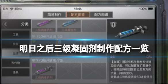 明日之后三级凝固剂怎么做?明日之后三级凝固剂是游戏中的最新配方道具,属于血清中的一种,需要玩家达到60级的制作等级才可以制作,可以持续回复自己和队友的护盾。那么下面就给大家带来明日之后三级凝固剂制作配方一览,感兴趣的小伙伴就一起来看看吧。