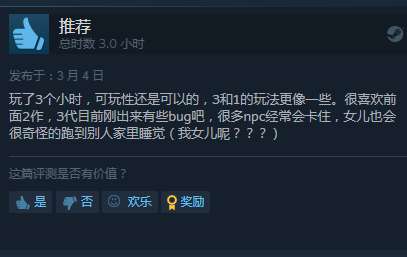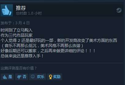 给出好评的玩家认为该作延续了前两作的核心玩法和风格,可玩性较高,是系列作品爱好者值得体验的新故事。