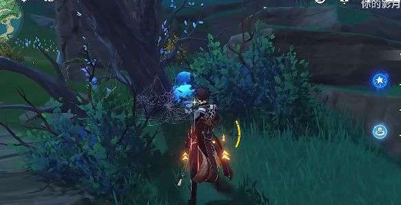 -到达传送点以后,往右侧移动,就能在大树下看到幽灯蕈。
