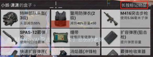但是淘汰盒和空投中的物资就不能用这种方法来标记了,很多玩家并没有注意到在物资捡取框中有“长按标记物资”的提醒。