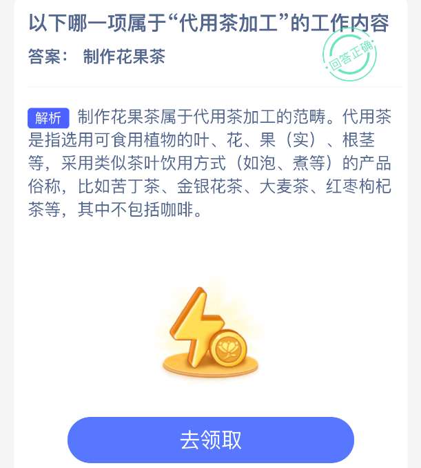 以上就是以下哪一项属于“代用茶加工”的工作内容?支付宝蚂蚁新村最新答案2025年12月11日,更多精彩内容,请点击关注pk游戏网更新!