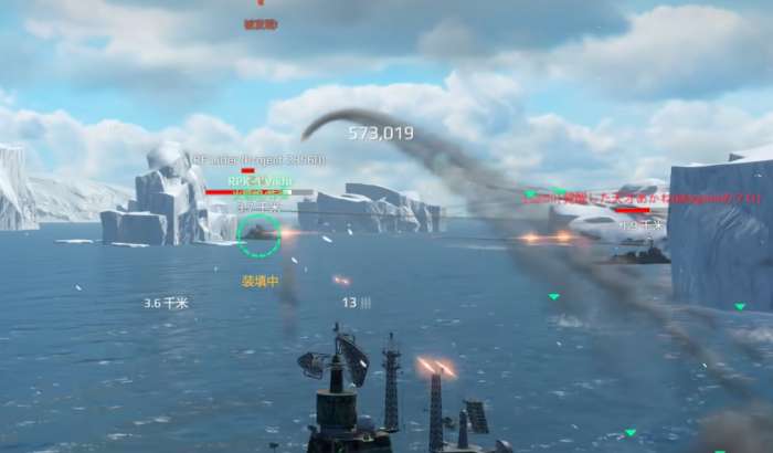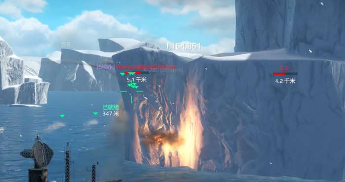主炮的表现同样值得一提。200毫米舰炮单轮齐射可造成约6万伤害,冷却仅7秒,输出节奏相当快。虽然炮弹飞行速度较慢,不利于攻击远距离高速目标,但对航母、巡洋舰等大型舰艇的威慑力十足。尤其在近距离时,炮弹散布表现优秀,配合火箭炮,可以有效削弱航母的作战能力。面对驱逐舰时,这门主炮的短冷却也能在敌方露头的瞬间造成高额打击,起到很好的压制效果。