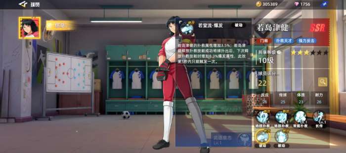 若岛津健作为门将定位的球员自身的扑救数值是很高的,原著当中的他也是被大家认为可以当做门将天才使用的,在实战当中场上的强力反击能力也是可以运用起来,目前在游戏当中若岛津健的球员评分是有221的评分,而其中比较突出的有反应26、传球25、体质23,耐力26这几项属性数值,可以说是基础的门将能力都达标的,在这里大家观察他六维图的话就会发现他在自身的能力数值上面基本都是全超20分的,所以这个球员当做门将使用的话强度自然不会说很差。