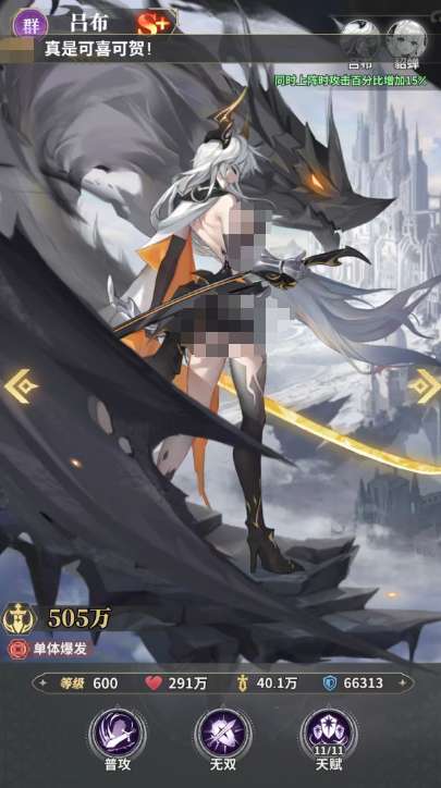 吕布放在这里的话,要注意如果单体爆发的时候没有爆发出来,那么会让敌人受到攻击的时候,减少这里拥有的怒气效果,而且她后期伤害还可以增加10%,最多的情况下如果有200%左右的提升,就可以带来更高的基础单独伤害能力,后期的输出效果当中,如果是队友有放了4次技能之后,吕布可以通过这里的次数叠加来对敌人追加一次攻击,虽然追加的只是普攻,但是普攻在效果当中还是有百分百的单击伤害的,另外大家要注意她其他的攻击是可以恢复怒气的,但是这个追加次数的普攻是不回复怒气的。