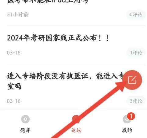 医考帮app怎么发表评论,在本站下载安装软件,进入医考帮app页面,点击下面的论坛选项,点击下面的编辑图标,最后输入评论内容信息,点击发表选项即可。