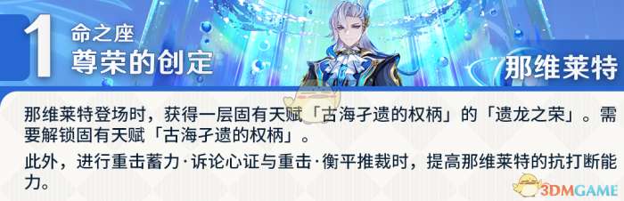 1、1命能够有效提升龙王的抗打断能力,防止丢失重击伤害,同时在登场时就获得一层固有天赋“古海子遗的权柄”。